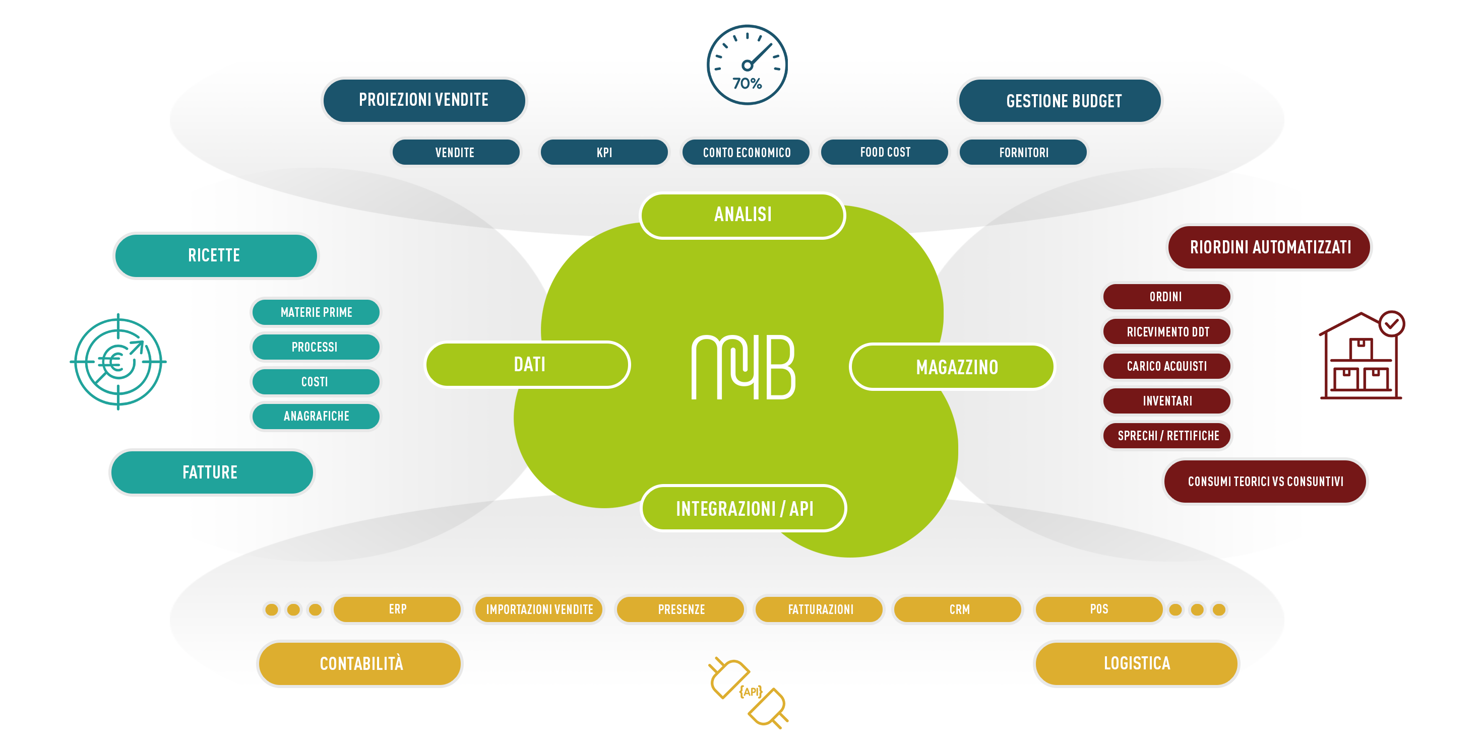 La piattaforma che unisce dati, magazzino, analisi e integrazioni in un unico ecosistema cloud. Tutto ciò che serve a un F&B manager, senza più fogli sparsi o sistemi isolati.